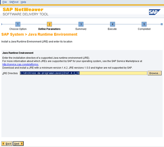 En caso de no tener instalada la JRE veremos la siguiente pantalla. Aquí tendremos que utilizar el browser para colocar la ruta donde se encuentra la carpeta de la JRE.