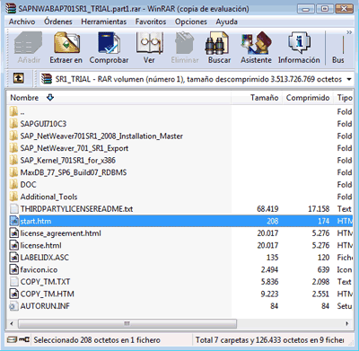 Para descomprimir los archivos de instalación de Sap NetWeaver necesitaremos del programa Winrar. Si todavía no lo tenemos instalado en nuestra máquina, podremos descargarlo de la siguiente dirección:
