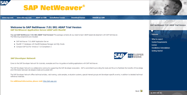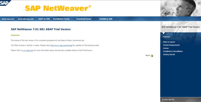 SapNetWeaver es una versión reducida de SAP que es adecuada para empezar a aprender la administración en un sistema SAP, entre otros temas. La licencia inicial de SapNetWeaver es por 30 días pero puede extenderse. Esto lo explicaremos más adelante en el curso.