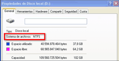 >>> El Filesystem debe ser NTFS