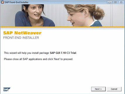Ahora vamos a instalar el SAP GUI. Para esto, tendremos que ejecutar el archivo SAPGUI710C3/SAP_GUI_7.10_C3_Trial_2009217_1034.exe y veremos la siguiente pantalla.